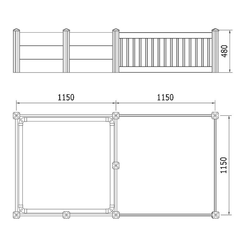 3 가지 크기로 제공됩니다. 74.8'l x 37.4''w x 18.9'H, 90.6'l x 45.3'w x 18.9'H 및 116.6''l x 58.3'w x 18.9'h는 다양한 품종을위한 충분한 공간을 제공합니다. 평평한 캡이있는 튼튼한 3 "x 3"게시물은 안정성을 보장하는 반면, 사전 경로 7/8 "x 6"레일에는 안전을위한 둥근 돼지 레일이 있습니다.