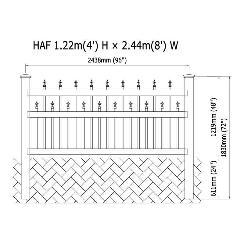 | 피켓 | 1 "x 1"x 40 ''x 19pcs (표준 간격) |