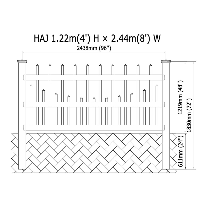 | 피켓 | 1 1/2 "x 1 1/2"x 40 ''x 21pcs (표준 간격) |