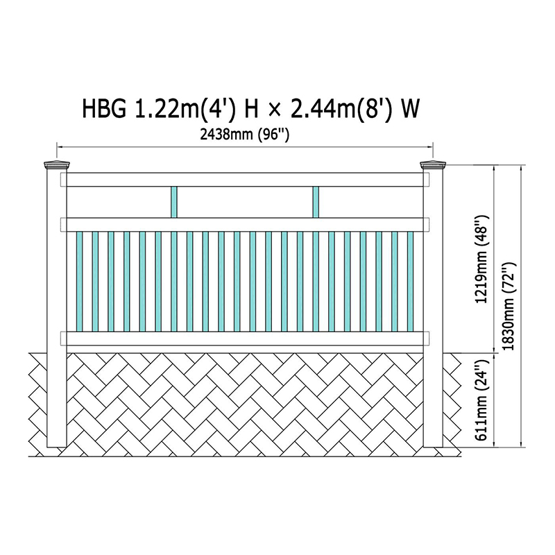 이 디자인은 뉴 잉글랜드 캡, 플랫 캡 및 고딕 캡을 포함한 매력적인 포스트 캡으로 완성되어 울타리 모양을 더 개인화 할 수 있습니다. 하단 레일의 크기는 2 "x 3-1/2"이며 조립이 용이하게 94 인치로 미리 노치되어 있으며, 상단 및 중간 레일은 각각 94 인치에서 2 "x 3-1/2"를 측정하는 손쉬운 설치를 위해 미리 노치되어 있습니다.